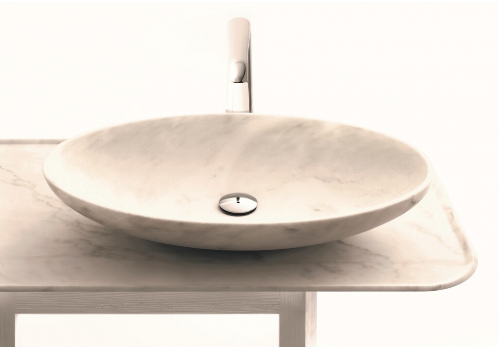Bowl N° 10 designed by Enzo Berti for Kreoo is an oval-shaped washbasin made of marble. Chromed, bronzed gold or matching marble click-clack drain. Available with interior in leaf finish or in the range of RAL colours.