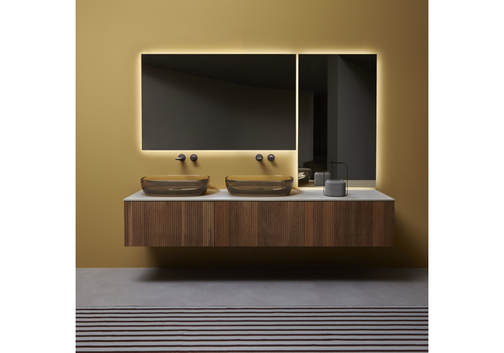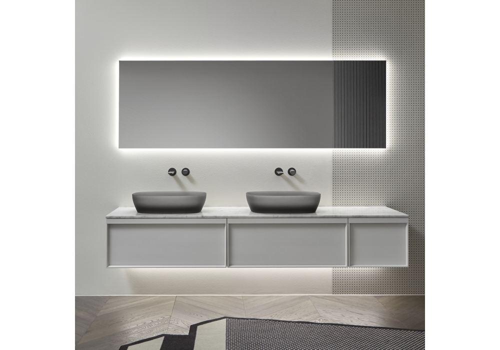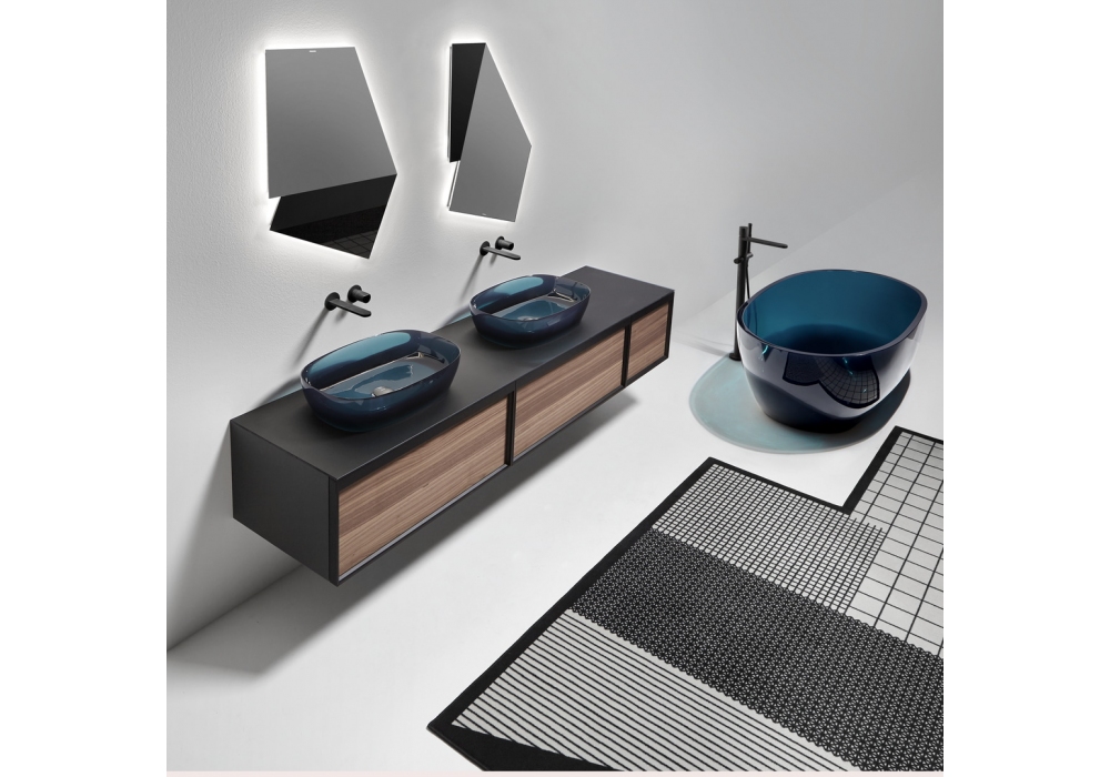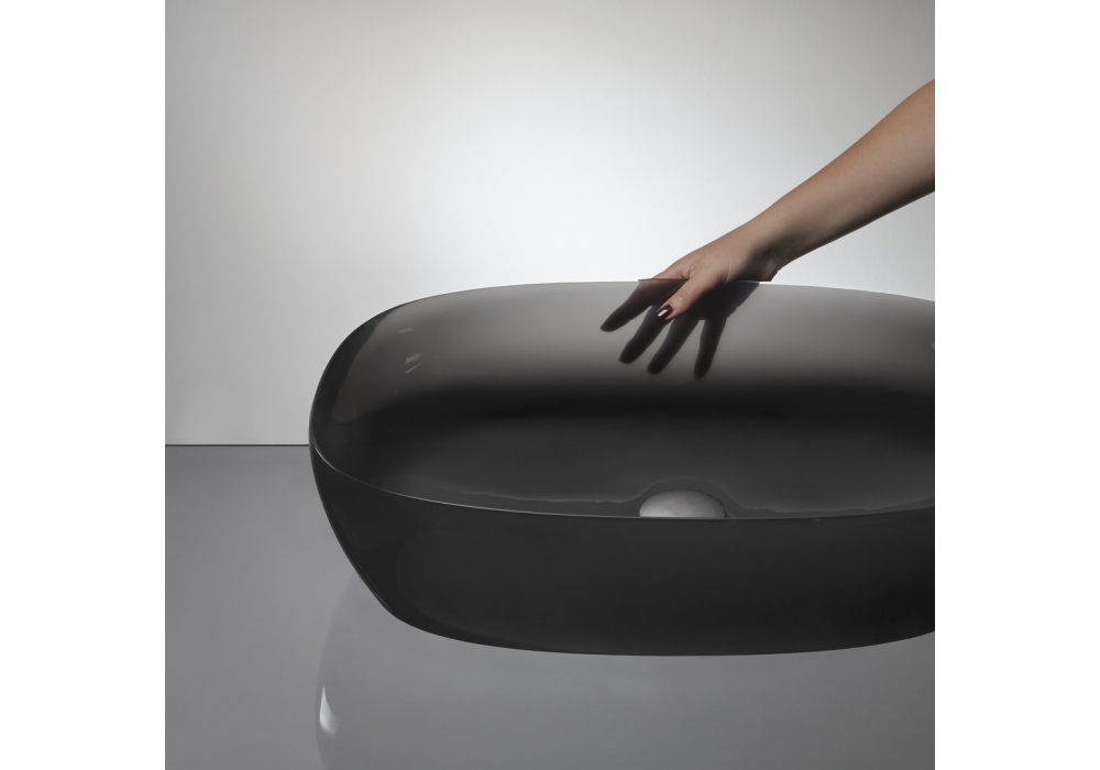 SensoC designed by Nevio Tellatin for Antonio Lupi is a rectangular countertop washbasin in Cristalmood or Icemood complete with drain with open plug and siphon connection.