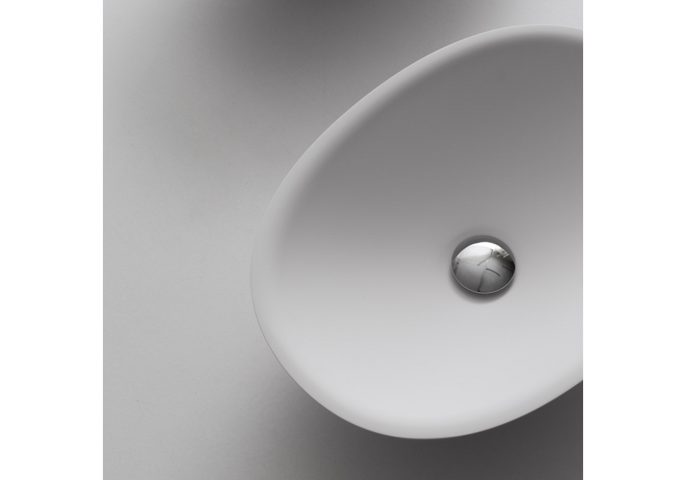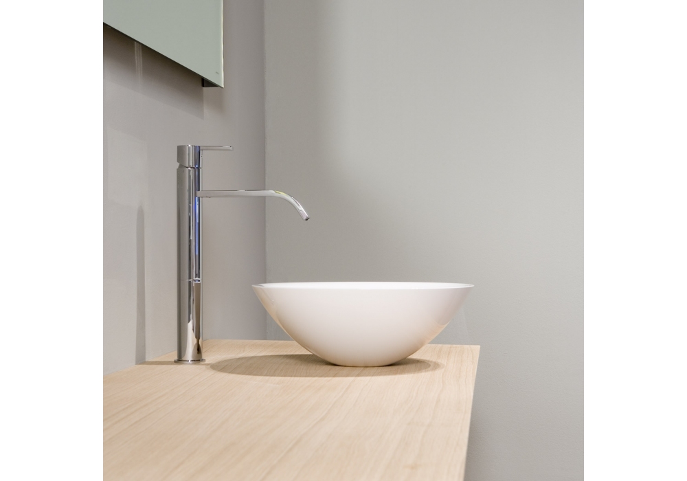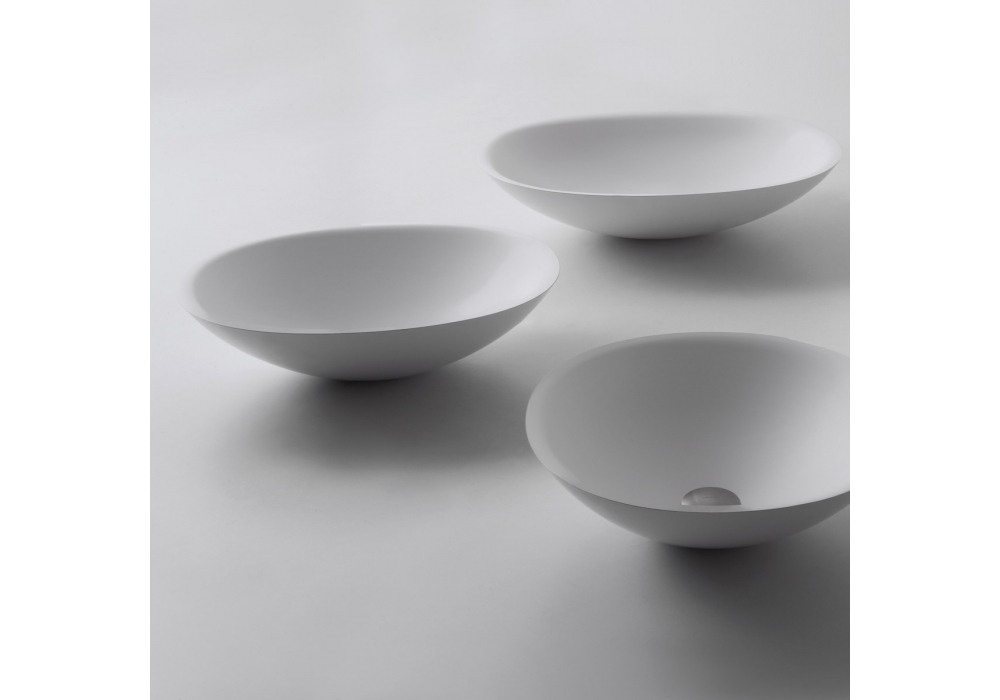 Servo designed by Mario Ferrarini for Antonio Lupi is a countertop washbasin in Flumood or Colormood complete with drain with open drain and siphon connection.