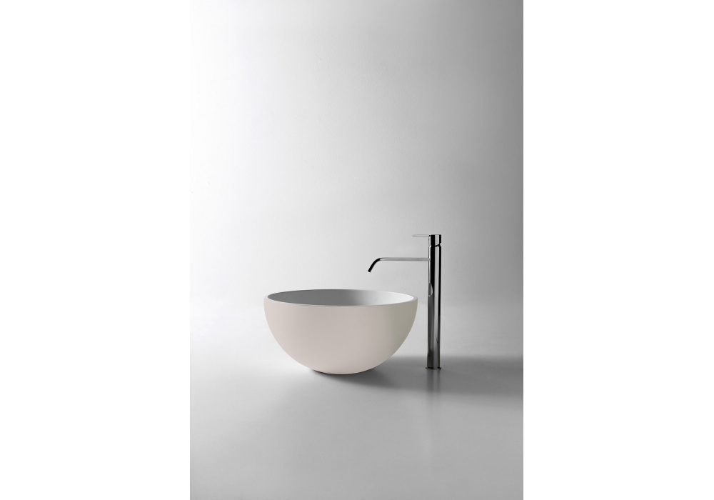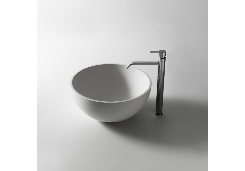 Urna designed by Carlo Colombo for Antonio Lupi is a round countertop washbasin in Flumood, Colormood or stone complete with drain with open drain and siphon connection.