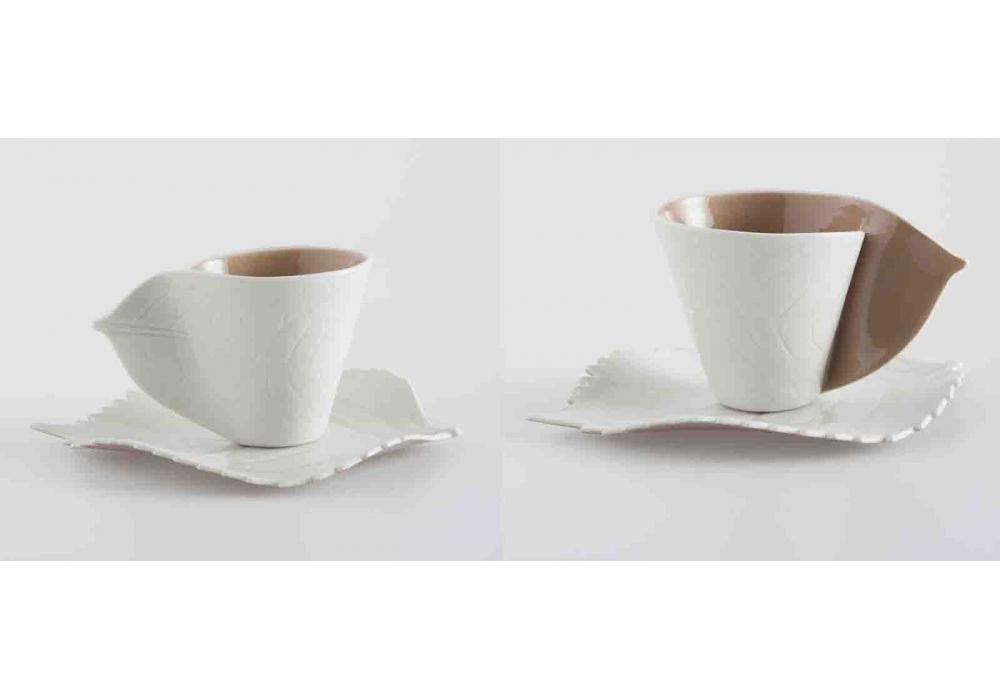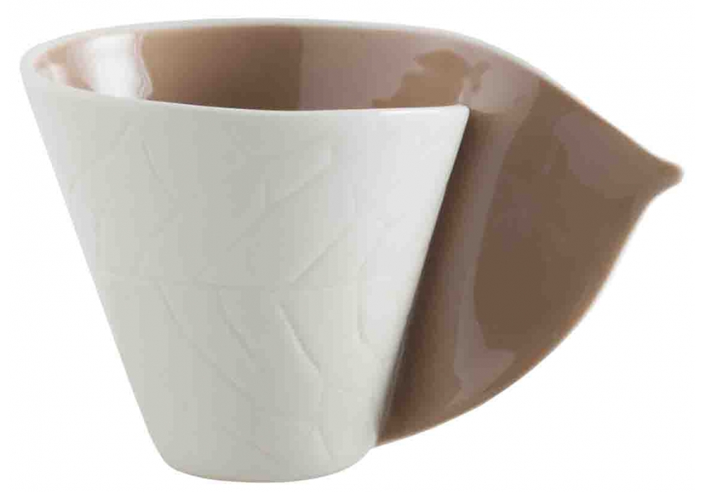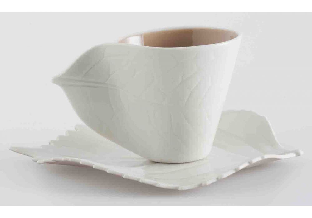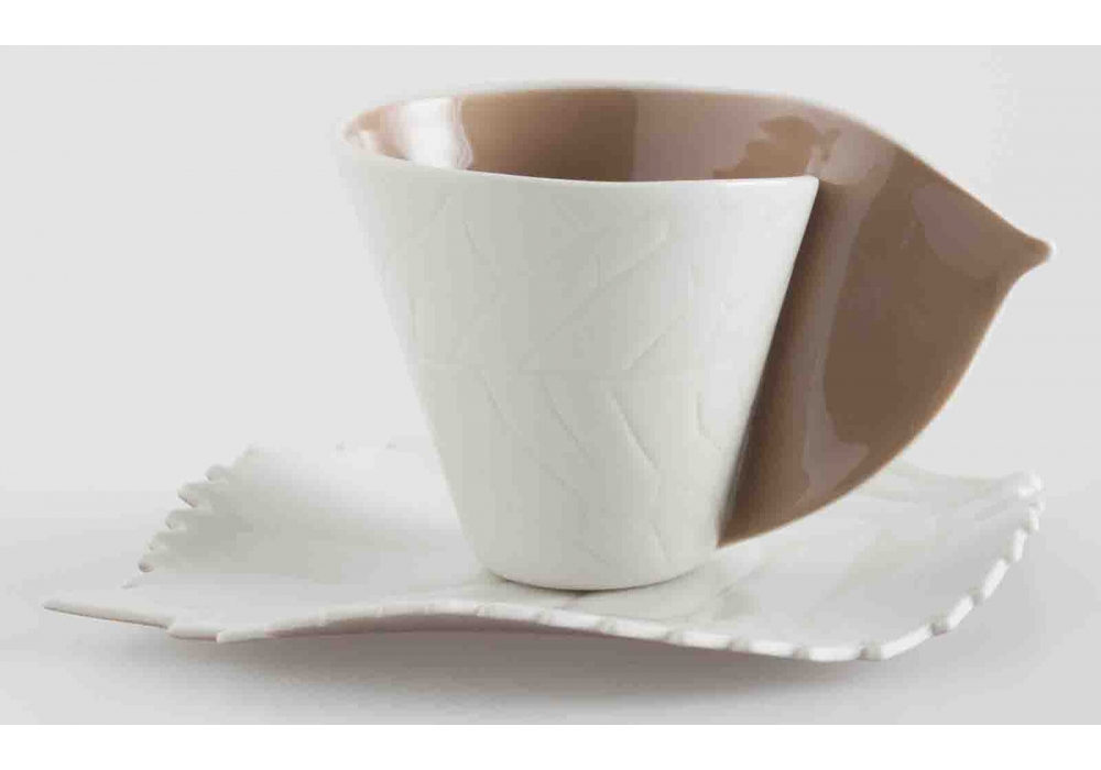 Natural Leaf designed by Francesca & Italo Bosa for Bosa is a cup in glazed ceramic with a particular leaf form and a color contrast between the inside and the outside, that makes it original and sophisticated at the same time. Available with or without the saucer.
