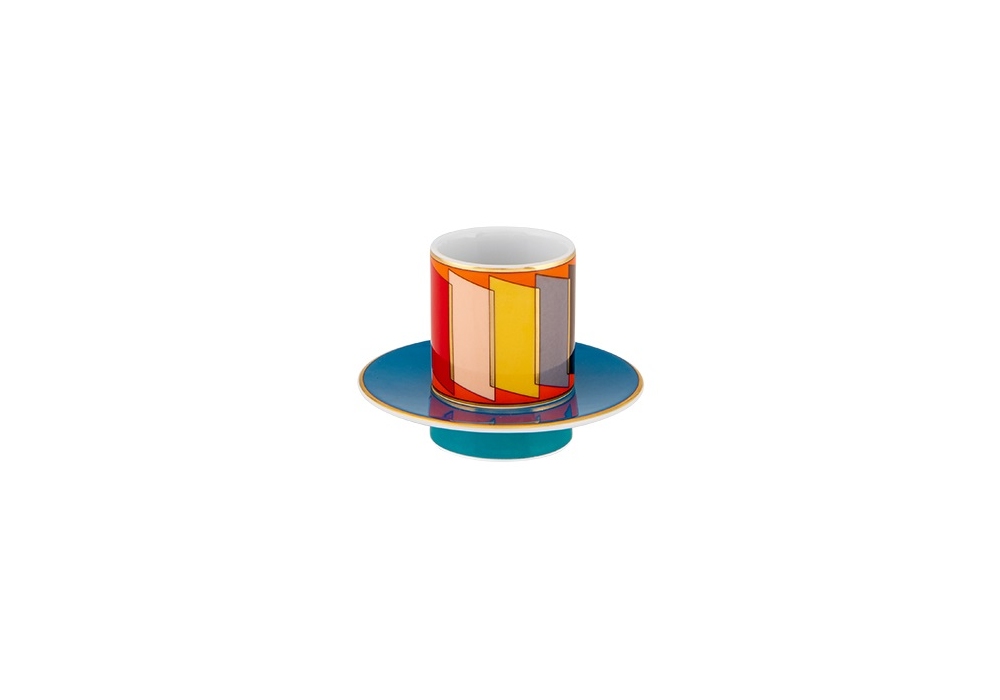 Futurismo designed by Vista Alegre is a set of 4 coffee cups & saucers made of porcelain. The elements are hand painted enriched with gold details. The Futurismo collection is a contemporary reinterpretation of the pioneering movement of all modern movements, celebrating progress and marking a period of reinvention of artistic languages.