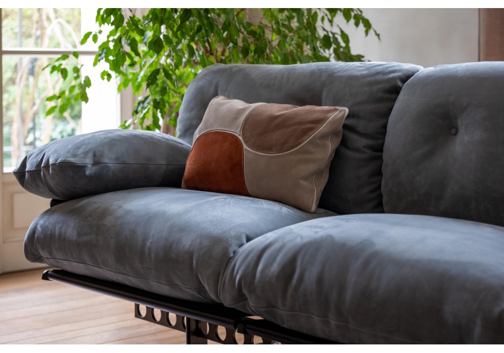 Ikiperu designed by Kristine Five Melvær for Poltrona Frau is a cushion upholstered in a combination of different leathers. The design with relief fi gures in is Pelle Frau® Velvety leather on a Pelle Frau® ColorSphere® leather background.