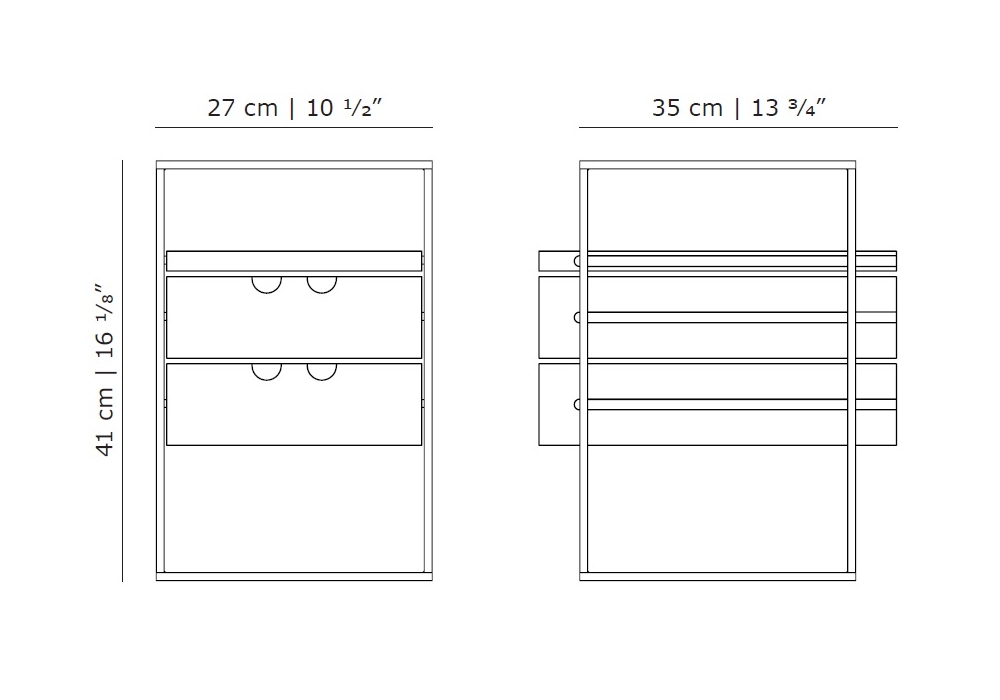 Cache designed by Paul McCobb for Karakter is a desk organizer made with black powder coated steel structure and drawers in transparent lacquered solid oak.
