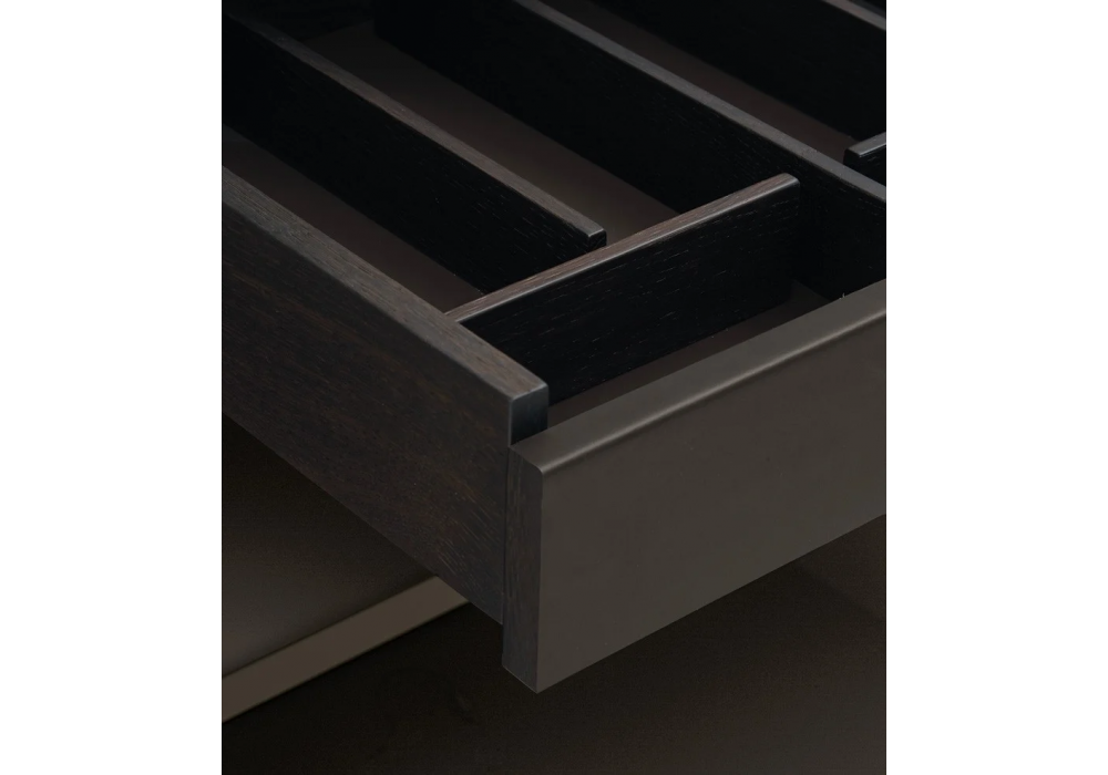 Free designed by Carlo Colombo for Poliform is an high sideboard with 2 doors, 1 drawer equipped with three internal shelves and cutlery holder made with a matt or glossy lacquered external structure, matt lacquered or wood handle profile.