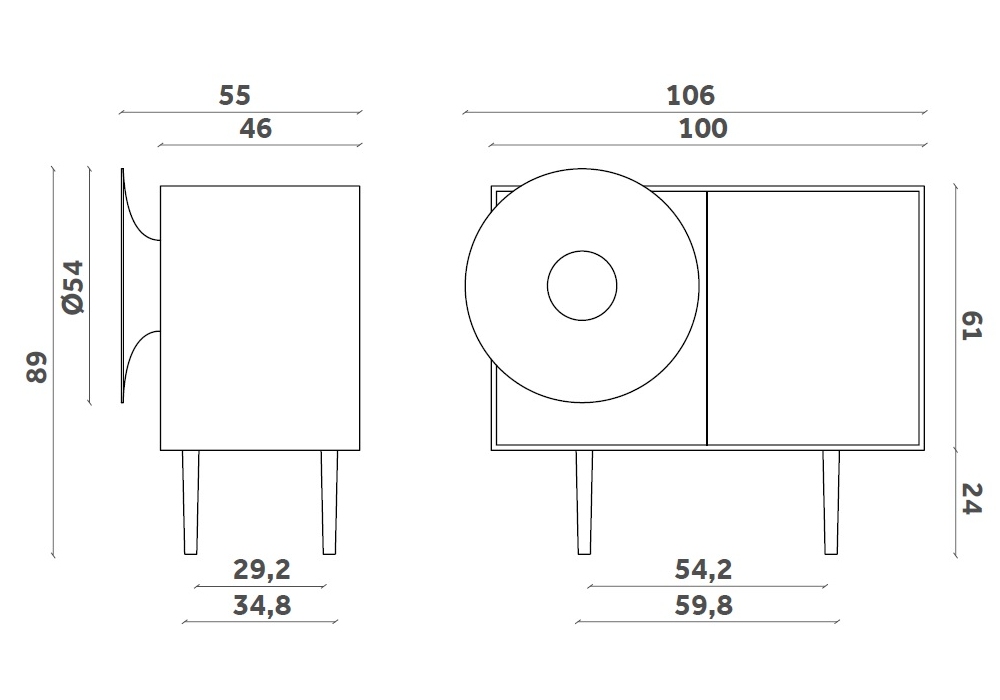 | Dimensions | • 106 x 55 x H 89 cm; • 156.5 x 55 x H 89 cm |