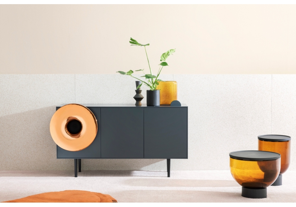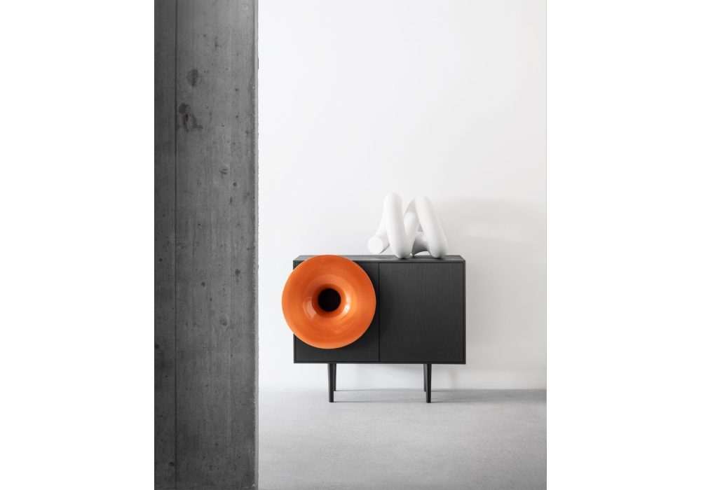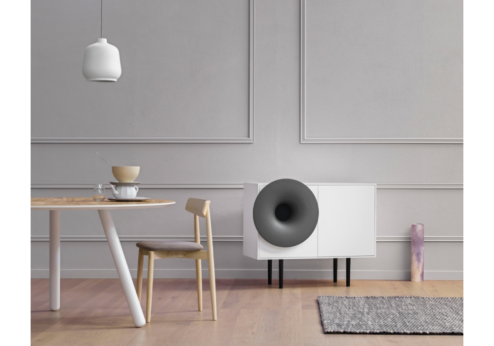 Caruso designed by Paolo Cappello for Miniforms is a sideboard with audio system. Structure in wood and trumpet in ceramic available in different colours. Available in two sizes and LED version.