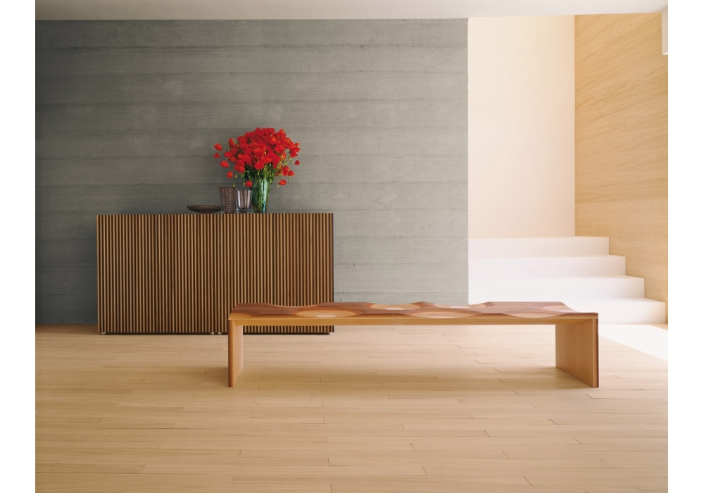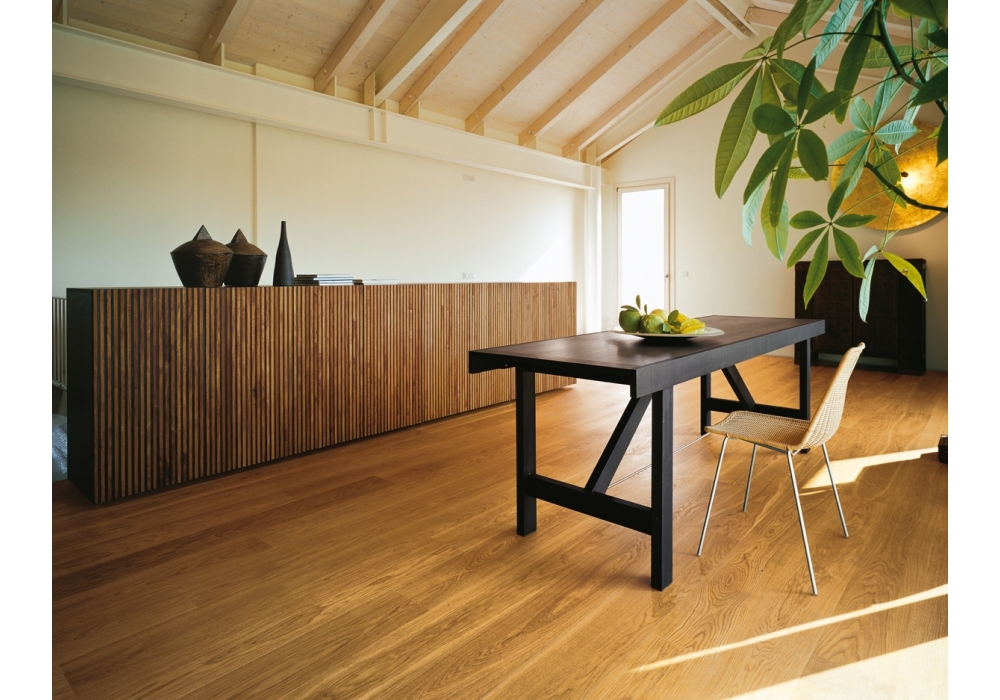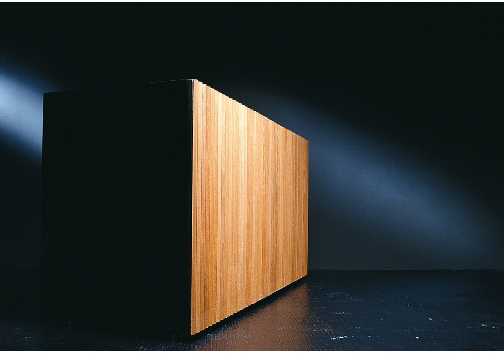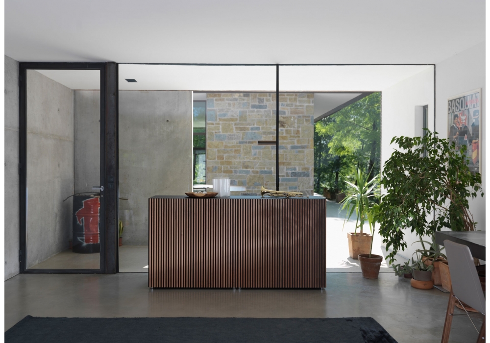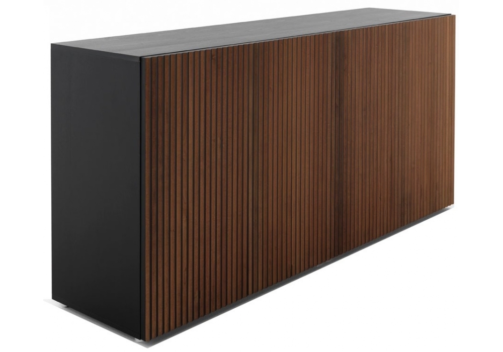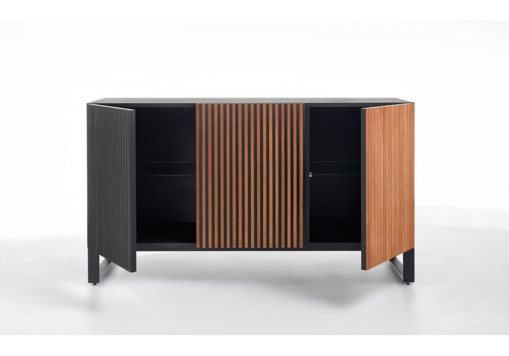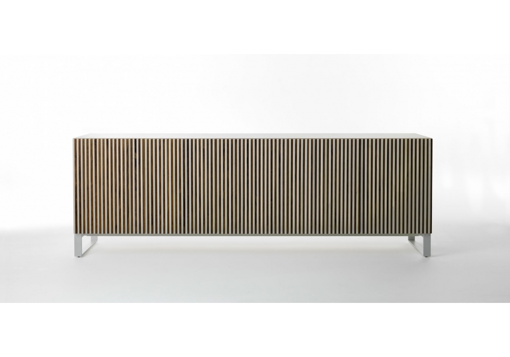 Leon Decor designed by Casamania & Horm is a sideboard made with a structure in lacquered particle board panels. MDF doors. Decorations in Canaletto walnut or natural oak applied on the doors. Internal shelves in tempered glass.