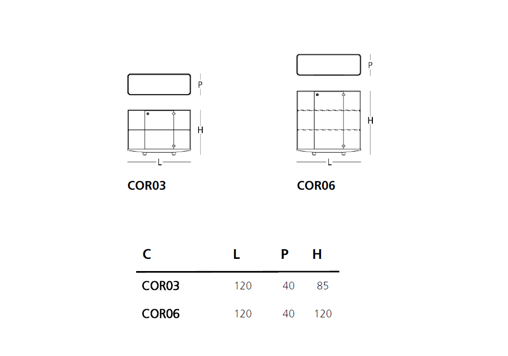 | Dimensions | 120 x 40 x H 85 cm; 120 x 40 x H 120 cm. |