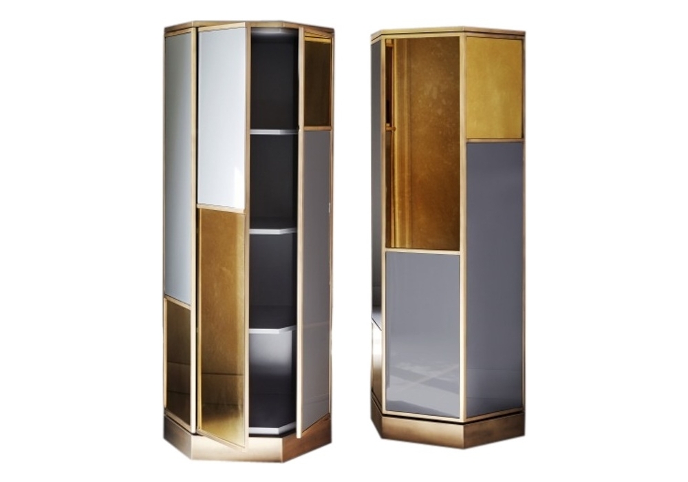 wooden inserts. The external finish is available in monochromatic version with a matt or glossy lacquer or with bronzed mirror combined with a glossy finish. The internal finish is available with a matt lacquer same colour as outside.