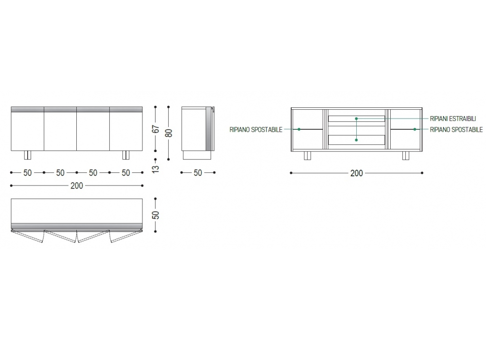Linear designed by David Knott for Riva 1920 is a sideboard with external frame and doors made in wood. Two lateral doors with internal clear glas shelf. Two central doors with two internal pull out shelves. Grooved handle. Led lighting for all modules. Lacquered iron handles and profile.