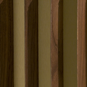 Shadow designed and produced by Lee Broom is a two-door sideboard structured in American walnut wood covered in shaped and satin brass. The top is always in walnut and brushed brass with a thickness of 3 mm.