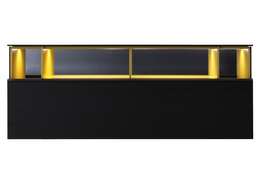 The Gallery Low Cupboard designed by Gabriele & Oscar Buratti for Porro is available with wooden structure. It is characterized by a door that slides up and down. Internal shelves in crystal. Available in 2 different dimensions, with or without back panels' lighting. Also available with marble top.