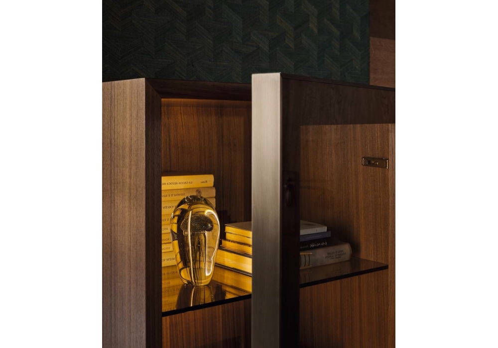 Victor designed by Castello Lagravinese Studio for Opera Contemporary is a glass cabinet made of wood and glass, available in 2 finishes. Also available in 2 versions: with 1 or 2 doors.