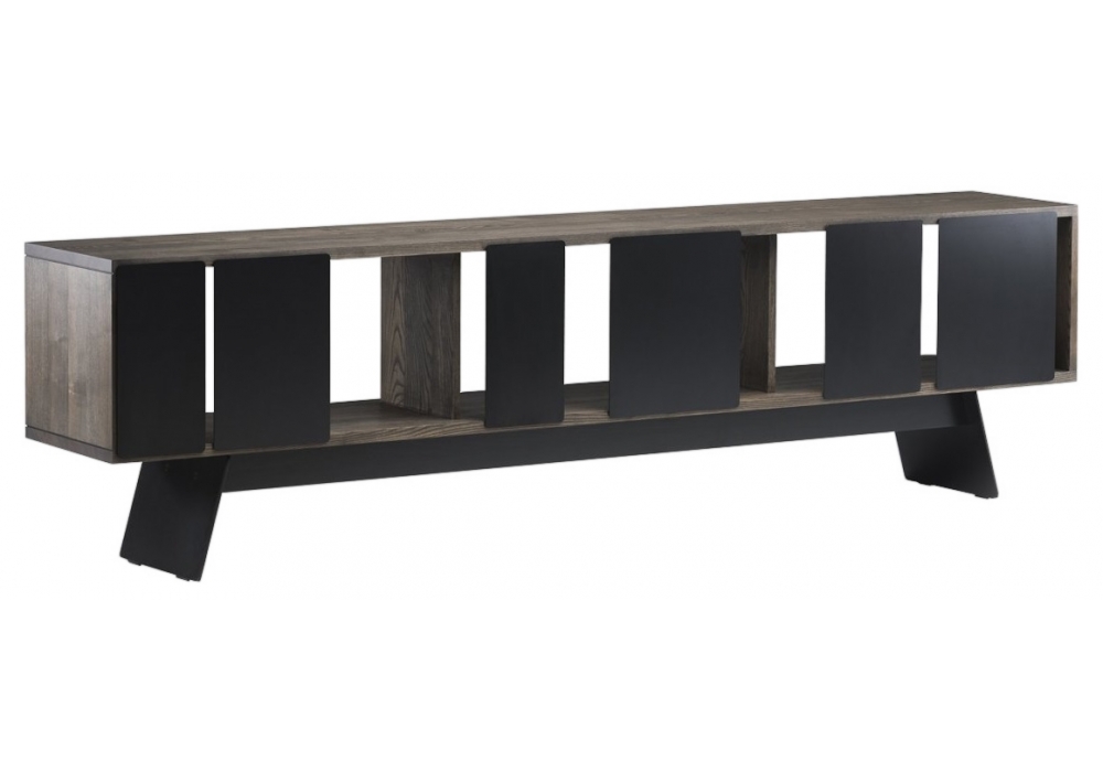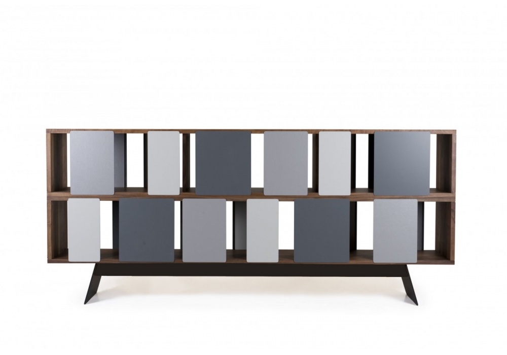 Different Trains designed by Matthew Hilton for De La Espada is a wooden cabinet available in different finishes with vertical panels made of laminate available in 4 colours and black painted steel legs. Also available in 6 sizes.