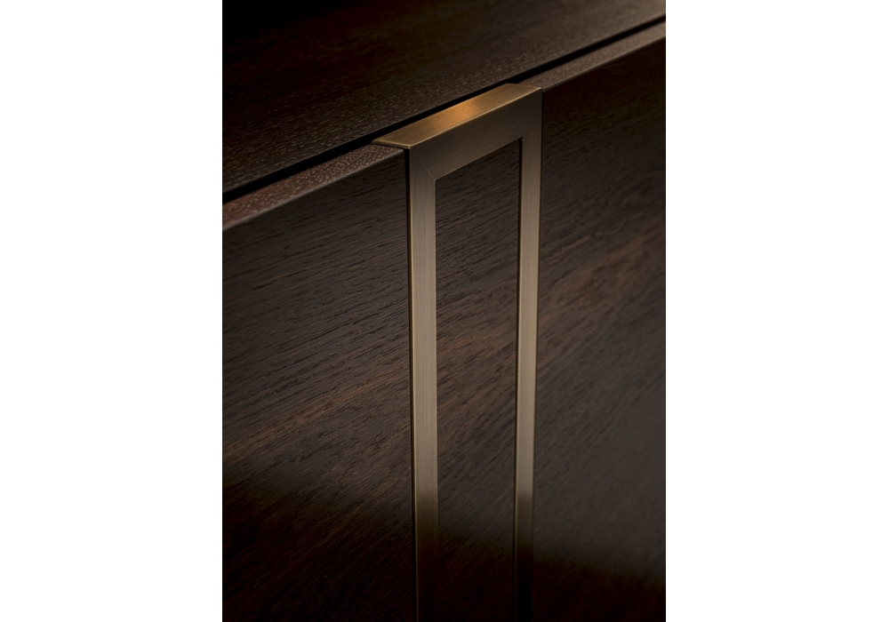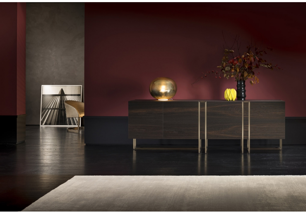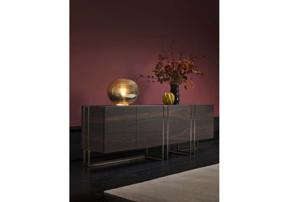 Cage designed by Ferruccio Laviani for Emmemobili is a sideboard made of veneered panels and frame in brass. Available versions with doors, with drawers or with doors and drawers.