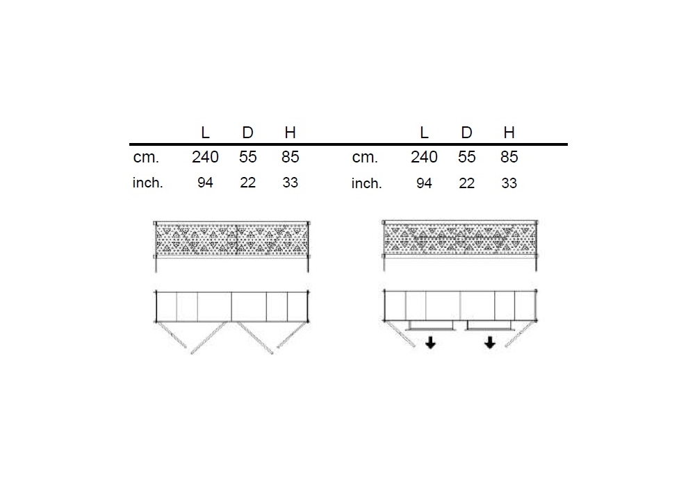 | Dimensions | L 240 x W 55 x H 85 cm |