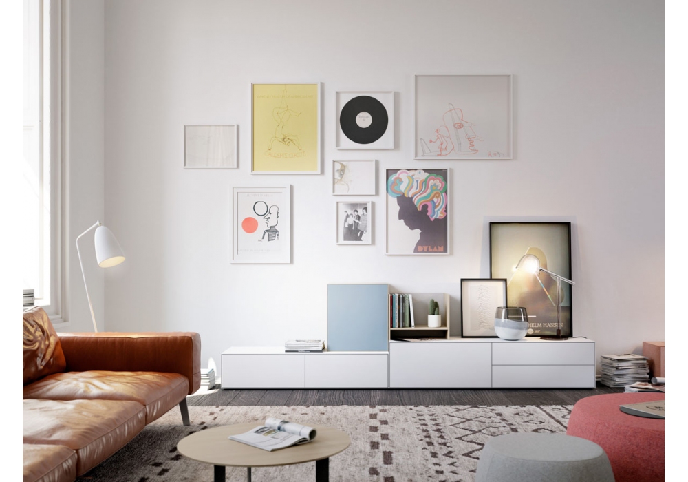 Lauki designed by Ibon Arrizabalaga for Treku is a sideboard from the Lauki collection. The composition presents a composition of modules resting on the floor in lacquered finish, module with lacquered door and open compartment.
