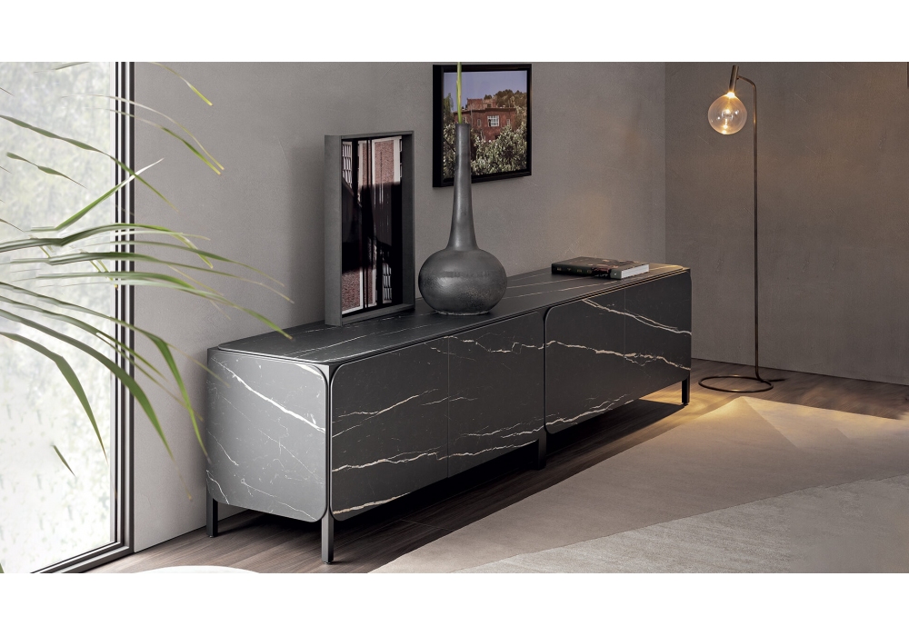 Frame K Sideboard designed by Alain Gilles for Bonaldo is a sideboard with ceramic structure in different finishes and metal base painted in various colors. Available in 2 sizes.