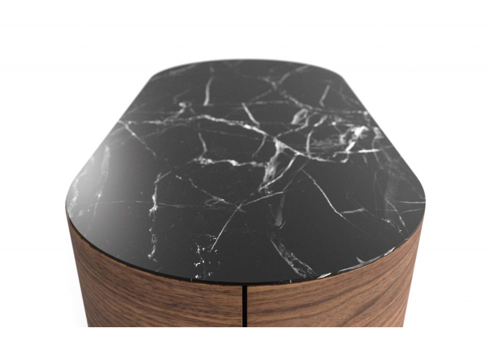 Rondos designed by Patricia Urquiola for Cassina is a chest of drawers. Structure in curved and veneered wood available in different finishes and top in marble.