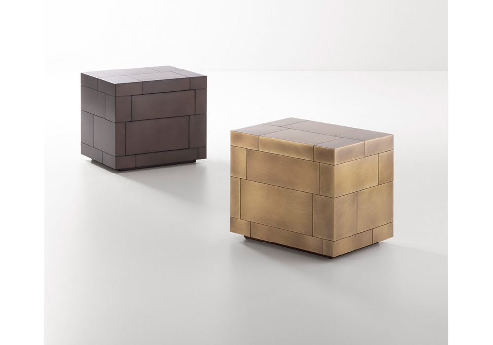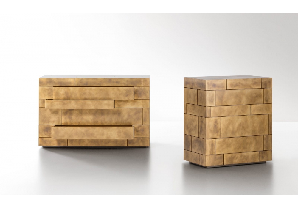Celato designed by R&D DeCastelli for DeCastelli is a chest of drawers covered in metal on all sides and internal structure in natural birch wood. Invisible drawers with push-pull opening. Available in different finishes and dimensions.