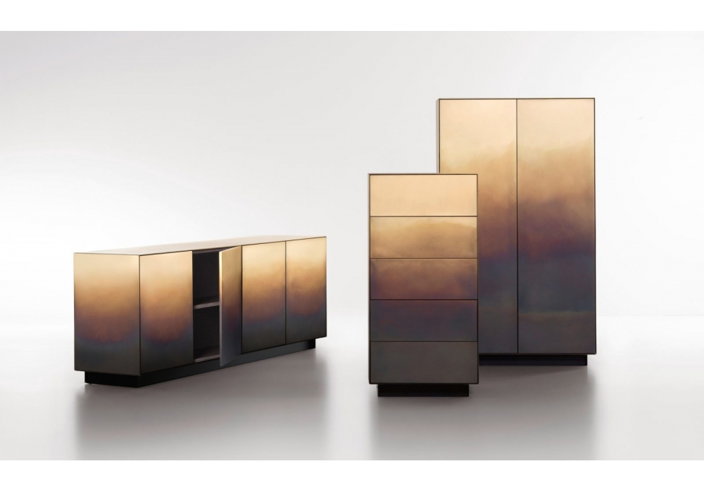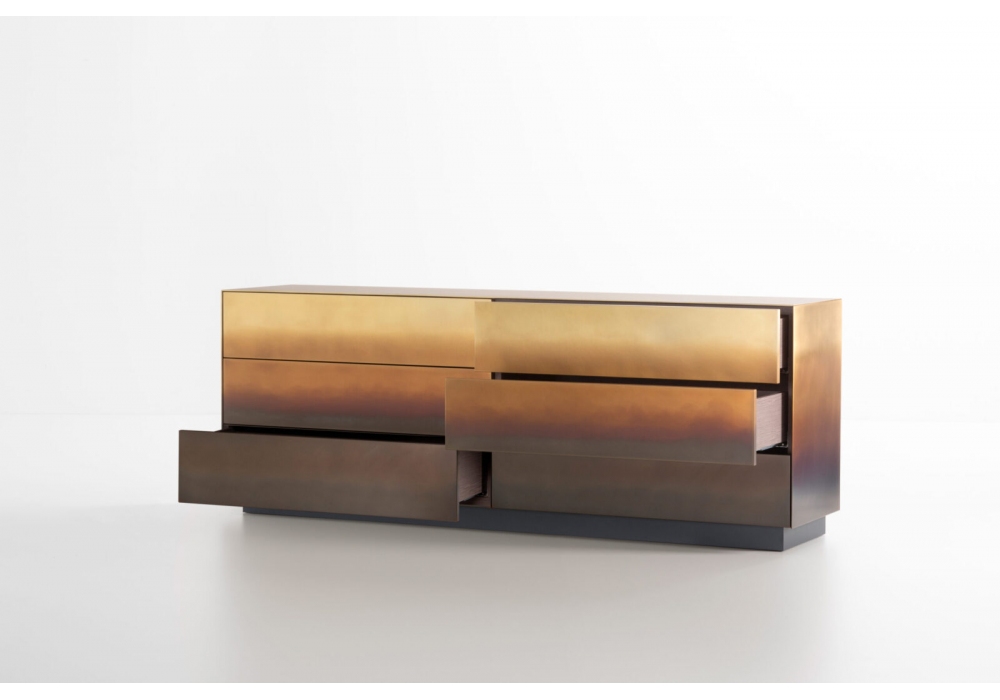 Marea designed by Zanellato / Bortotto for DeCastelli is a chest of drawers covered in metal and internal structure in titanium oak. Doors and drawers with push-pull opening. Available in different finishes and dimensions.
