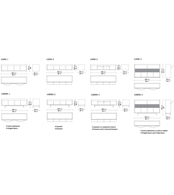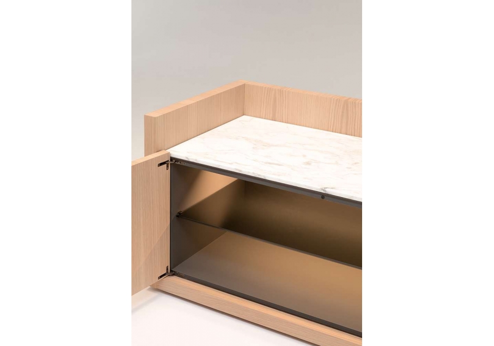 Liagò designed by Piero Lissoni for B&B Italia is a sideboard made with a glossy or satin lacquered structure and in canaletto walnut wood. Top in the same finish as the structure or in marble. Available in different models.