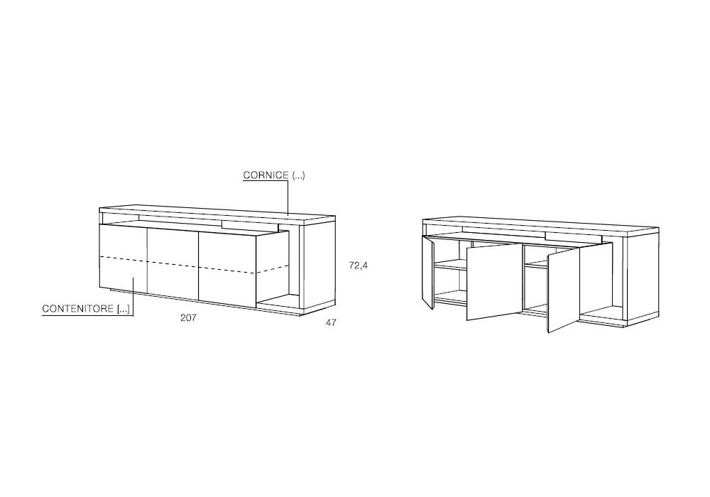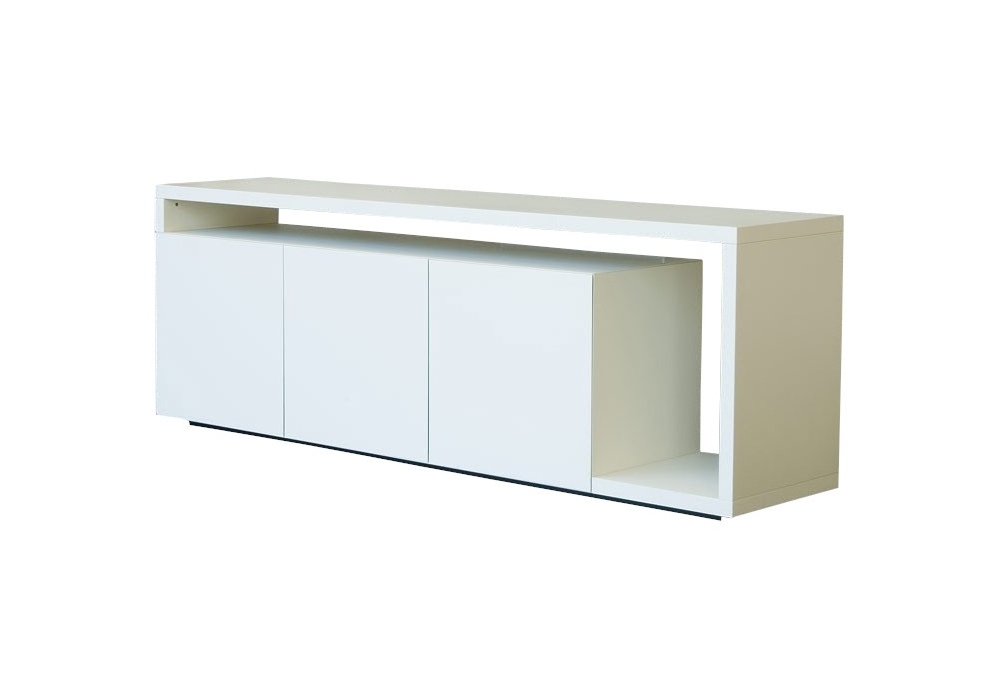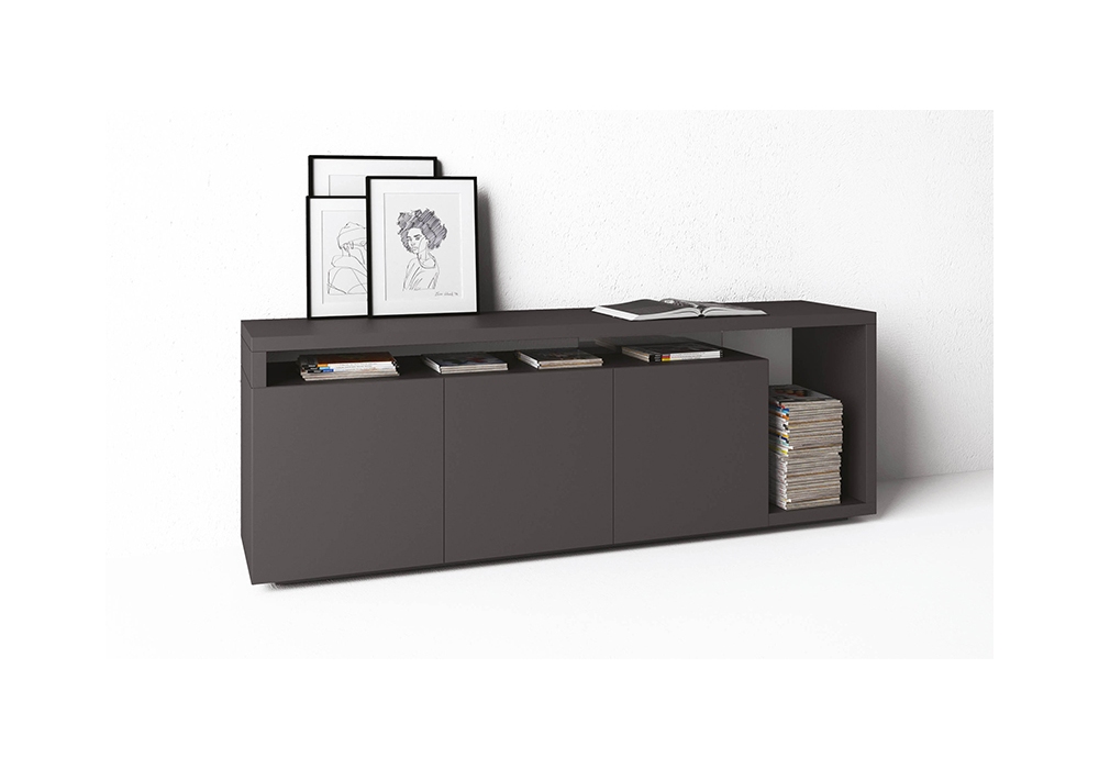 Aria designed by Studio KBDS for Minotti Italia is a sideboard in agglomerated wood with three hinged doors and three movable shelves. Embossed finish available in different colours, container and frame can have different colours. Container finish also available in gold or silver leaf.