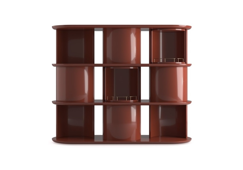 Hide&Seek designed by Pietro Russo for Gallotti&Radice is a storage unit with structure, shelves and half-cylinder in lacquered wood in the colour Red, Grey, Black, White, Green or Blue. Half-cylinder with front or rear opening. Available version with rotating cylinders, in pre-established positions, which allows the closing of the compartments. Satin brass details.
