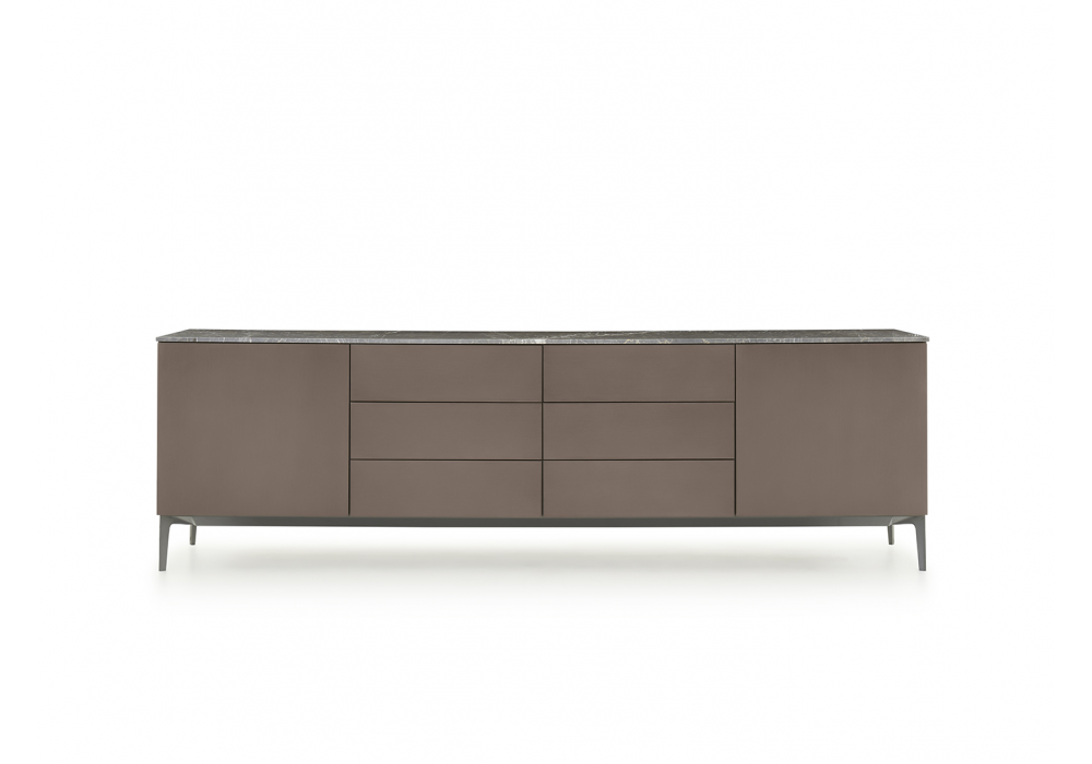 505 UP designed by Nicola Gallizia for Molteni&C is a sideboard with a thousand faces, just like the countless variations and combinations of its facades. It comes with a dedicated depth and a double option for the base: on the ground with a plinth or with a metal base for a lighter version.