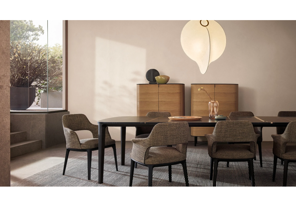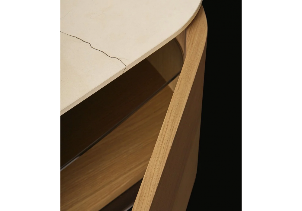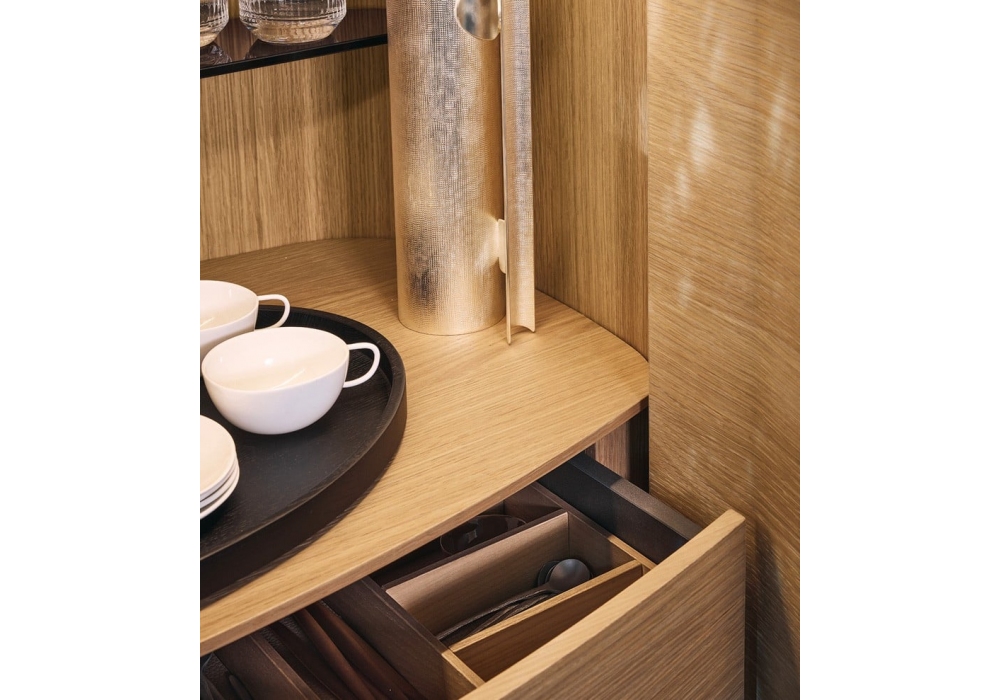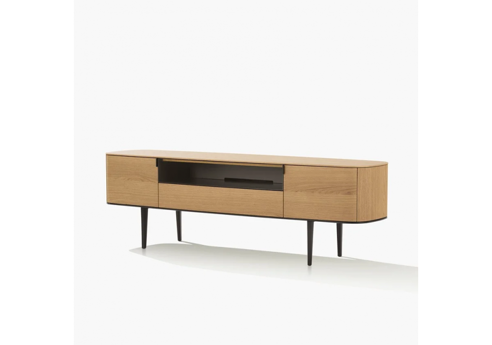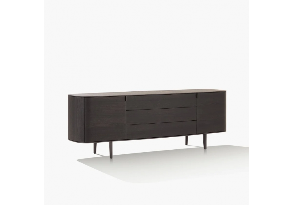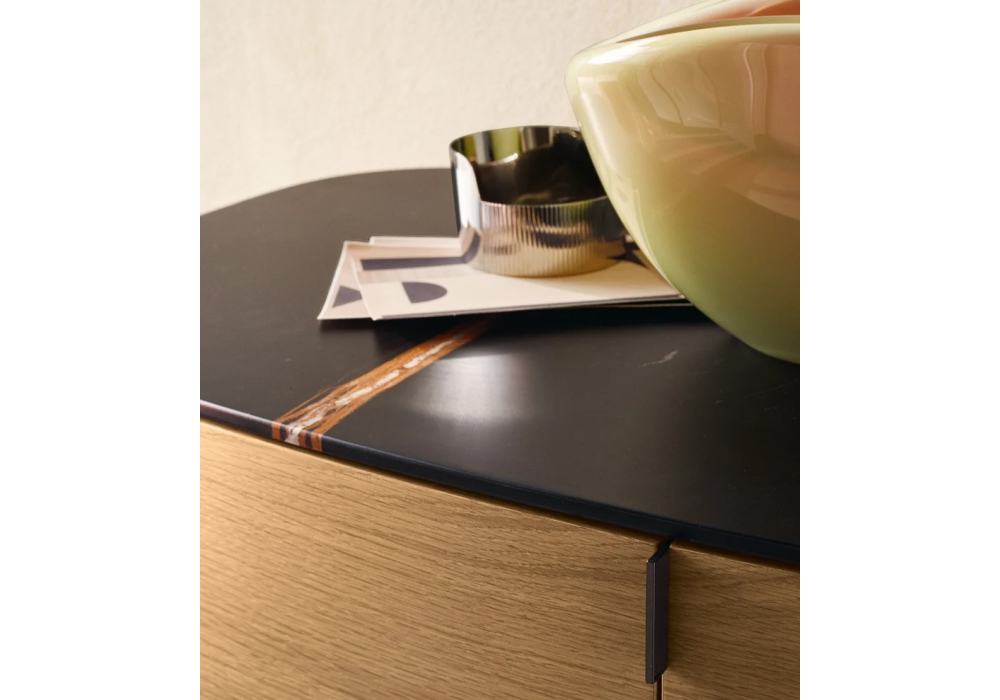 Symphony designed by Emmanuel Gallina for Poliform is a sideboard collection with metal feet, structure and frontal parts in wood and top in wood or marble.