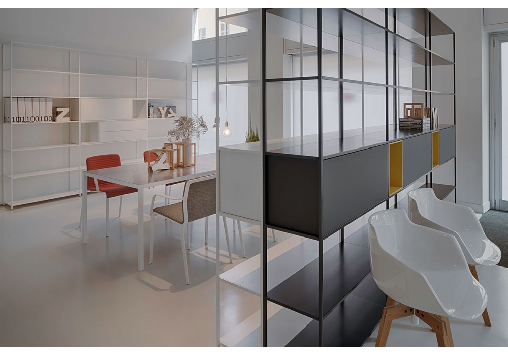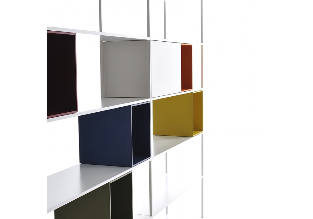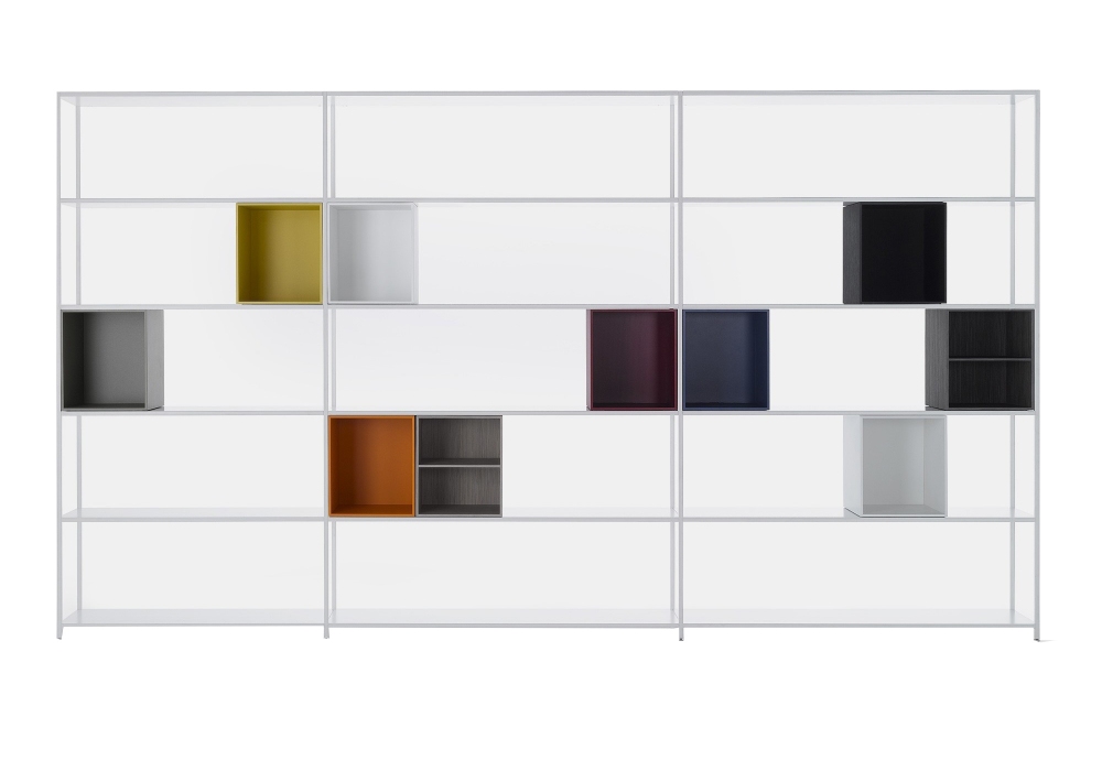 Minima 3.0 designed by Bruno Fattorini for MDF Italia is a modular system that is divided into 5 types: FLOOR, WALL, SKETCH, SIDEBOARD and ROOM DIVIDER. In addition, for the floor version, there are two new heights - 261.5 and 298 - and shelves with integrated LED lights.