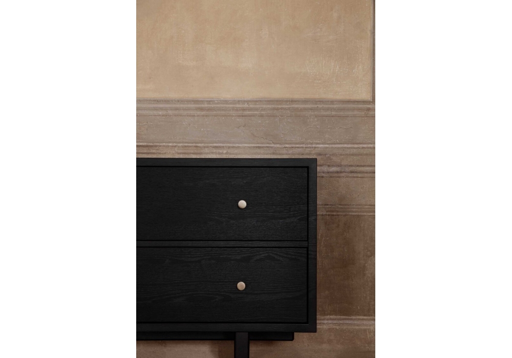 Private designed by Space Copenhagen for Gubi is a sideboard made of veneered oak. It is available in brown / black or light color.