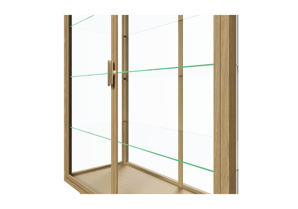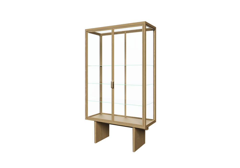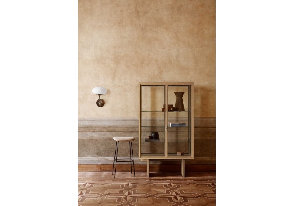 Private designed by Space Copenhagen for Gubi is a showcase made of veneered oak. It is available in brown/black or light stained.