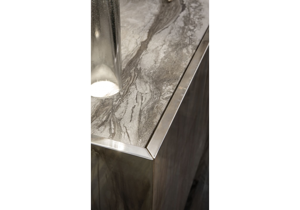 Side-X Evo designed by Massimo Castagna for Henge is a sideboard composed of solid wood structure. Flush doors in solid wood or covered with metal. Top made of wood or stone. Base in black burnished steel. The sideboard is available in different sizes and finishes. LED lighting available upon request.