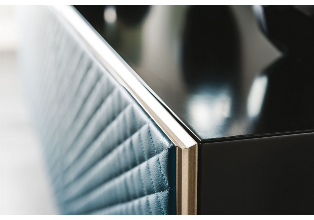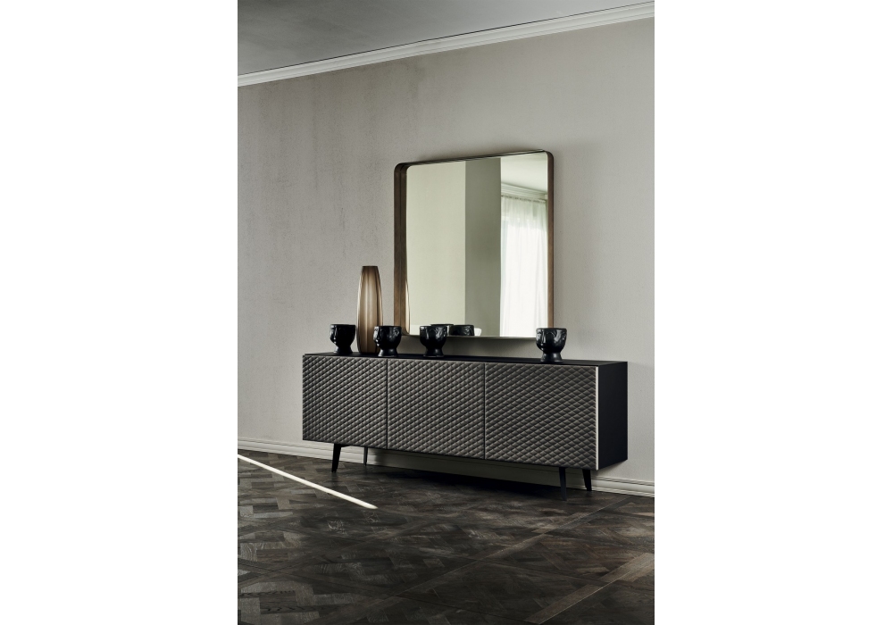 Absolut designed by Paolo Cattelan for Cattelan Italia is a sideboard made of lacquered wooden structure and base in varnished steel in the same colour of the structure. Doors with quilted covering in ecoleather or leather. Internal shelves in transparent glass. Available with top in extra clear frosted glass painted white, graphite or black or bronze mirrored glass.