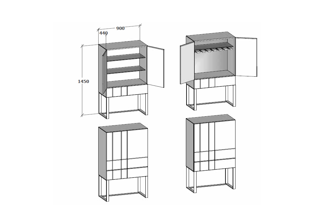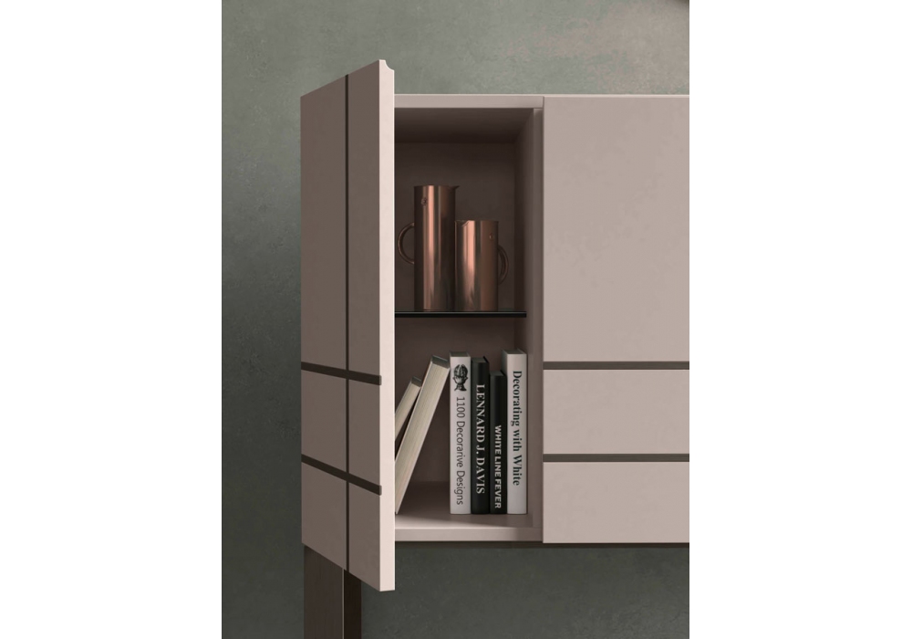 Aqua 90 designed and produced by Olivieri is a storage unit with matt lacquered or metallic lacquered metal base, frontal customizations with engravings or metal inserts are available. The AQUA 90 module is available with a bar version that includes mirror back, internal glass shelf and glass holder shelf. Option for led lighting.