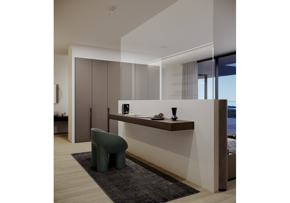 The Fashion Entrepreneur's villa designed and produced by Olivieri is an integrated floor-to-ceiling day system with industrialized fixed elements and custom-made elements typical of carpentry. All with the aim of optimizing time, quality and costs.