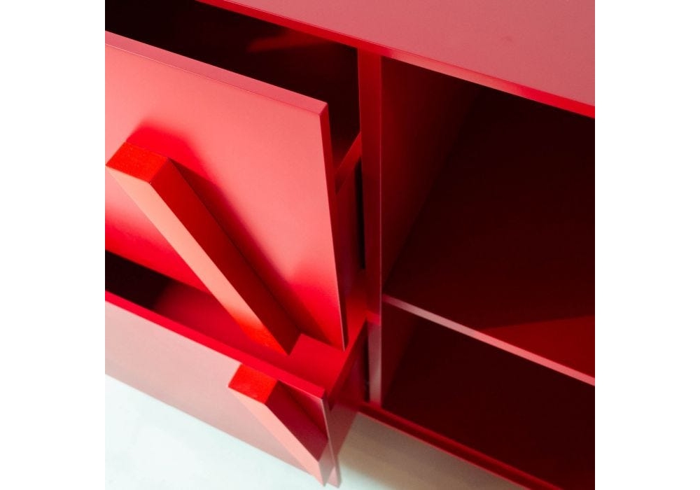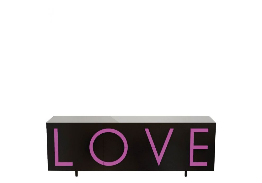 Love designed by Fabio Novembre for Driade is a sideboard with two hinged side doors and movable internal shelf, with two central drawers with total extraction. Structure made of MDF lacquered externally and internally. LOVE lettering in relief with handle function made of easily replaceable lacquered MDF, thus personalizing the container. Adjustable cylindrical feet diameter 3.5 cm. and height 10 cm. of the same color as the structure. Available in medium or large version. Internal use only.
