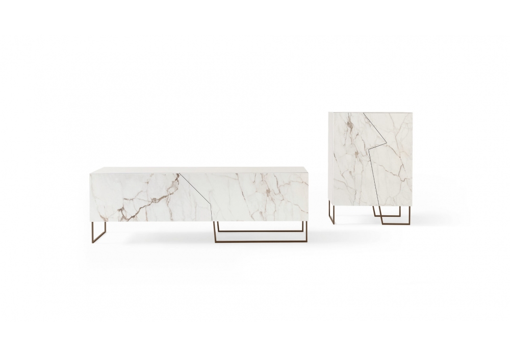 Doppler K designed by Giuseppe Viganò for Bonaldo is a sideboard with metal base painted in different finishes, ceramic doors in various colors and external structure in matt, white or black lacquered wood. Available in 2 models.
