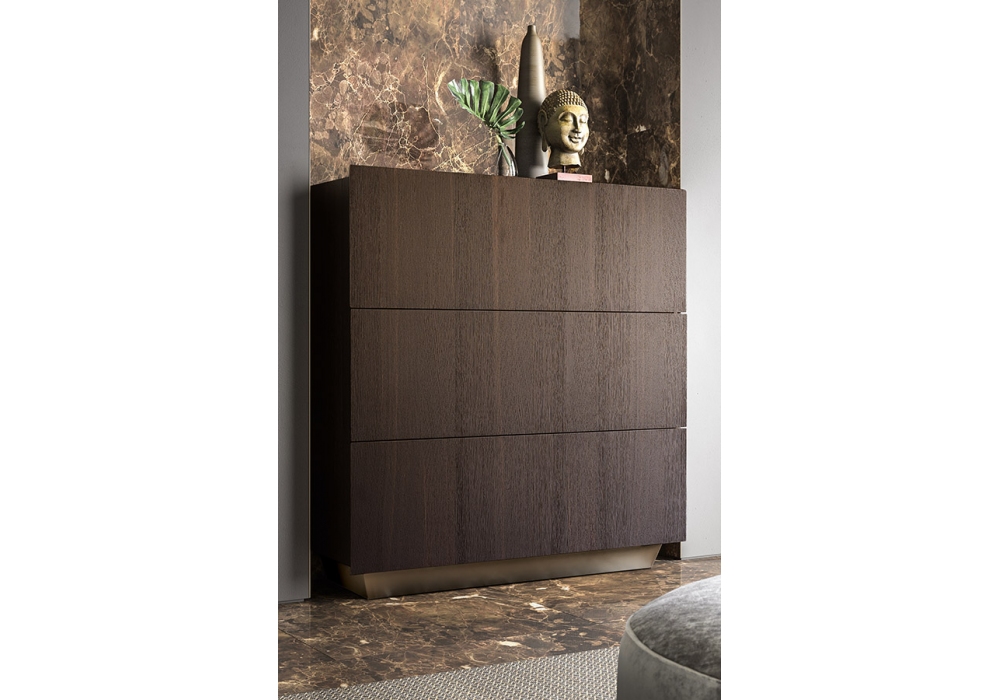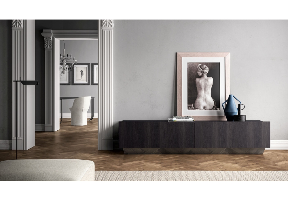 Tosca designed by Pianca is a sideboard made with metal base with matt lacquered finish or in metallic finishes. Structure consisting of panels in wood particles with matt lacquered synthetic material or Essenza coating. Available in different models.