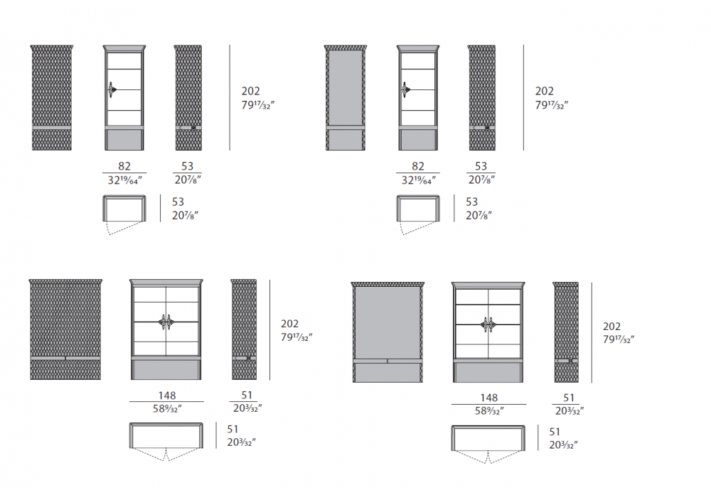 | Dimensions | 148 x 51 x H 202 cm; 82 x 53 x H 202 cm. |