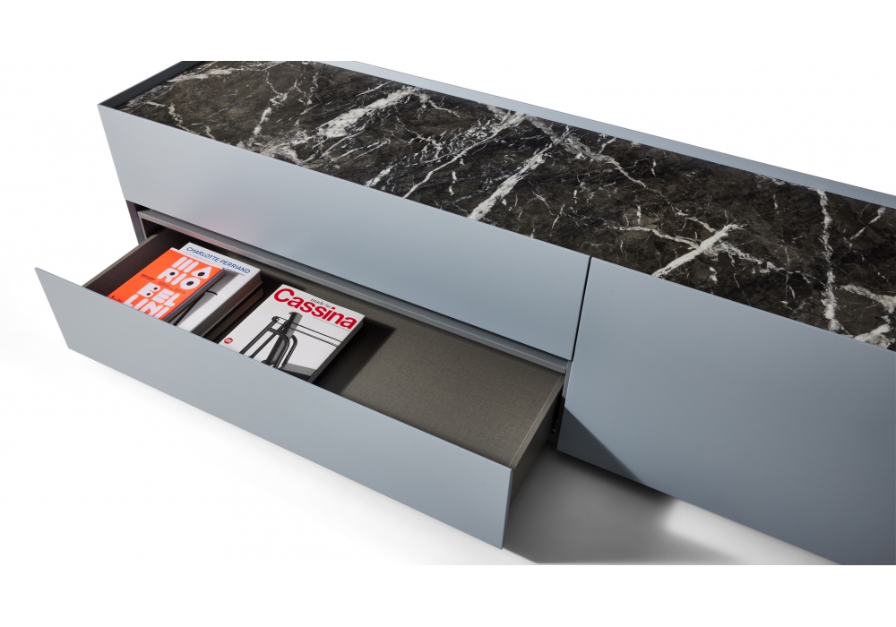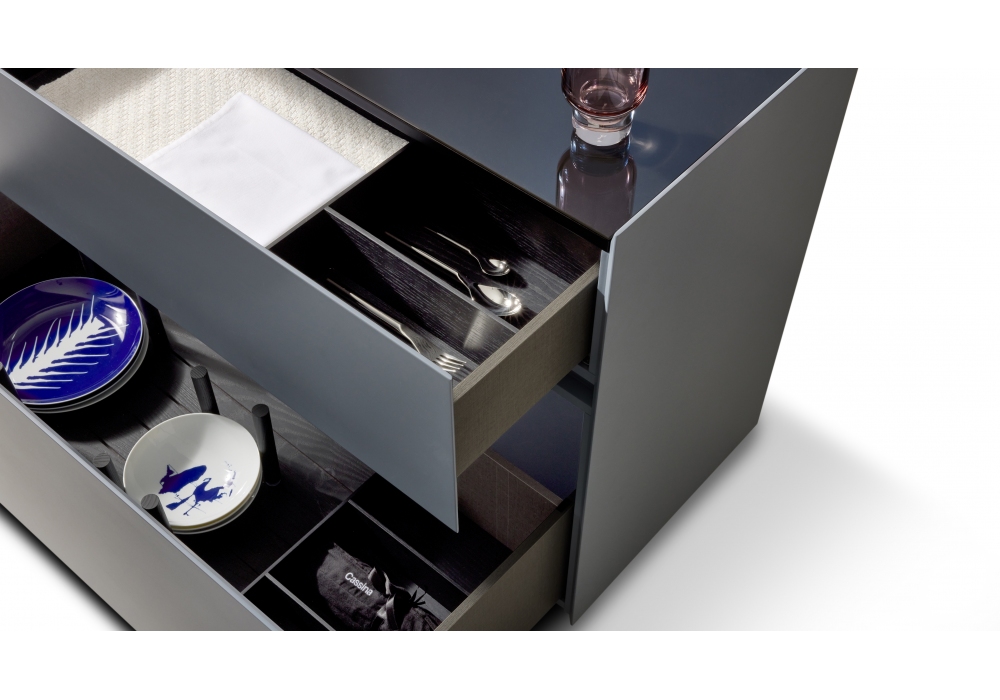 Ghost Box designed by Mikal Harrsen for Cassina is a collection of containers made of matt lacquered wood, interiors in anthracite laminate and glass or marble top. Available in different finishes and dimensions.