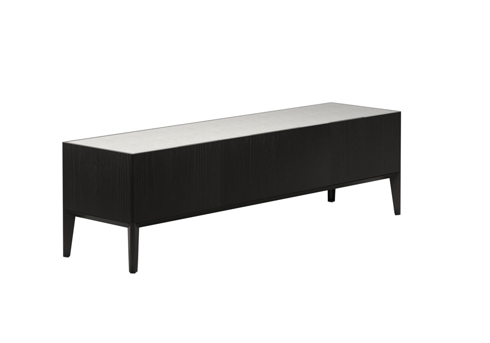 Dam Buffet Low designed by Marco Piva for Casamania & Horm is a sideboard with a rectangular shape, it has wooden doors with various finishes, with a book opening, which can be separated by a central drawer in the Low version which hides an additional container element . The metal part follows the entire low perimeter of the cabinet and ends in four feet at the external corners. The Dam cabinet collection is enriched with further elements of different sizes, such as the buffet unit and the bar cabinet.