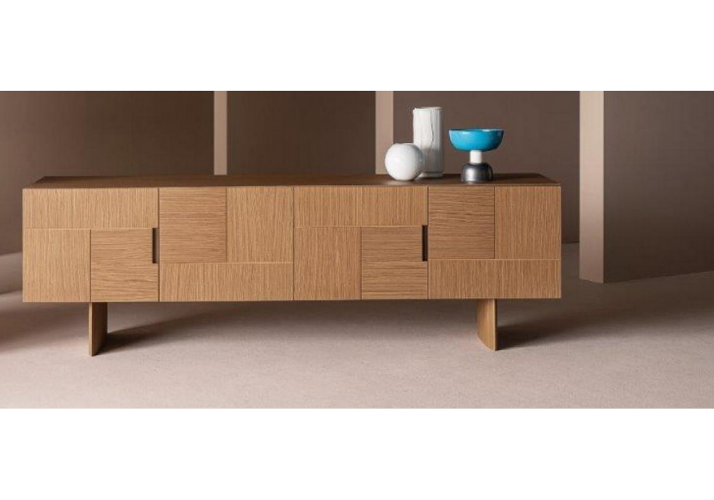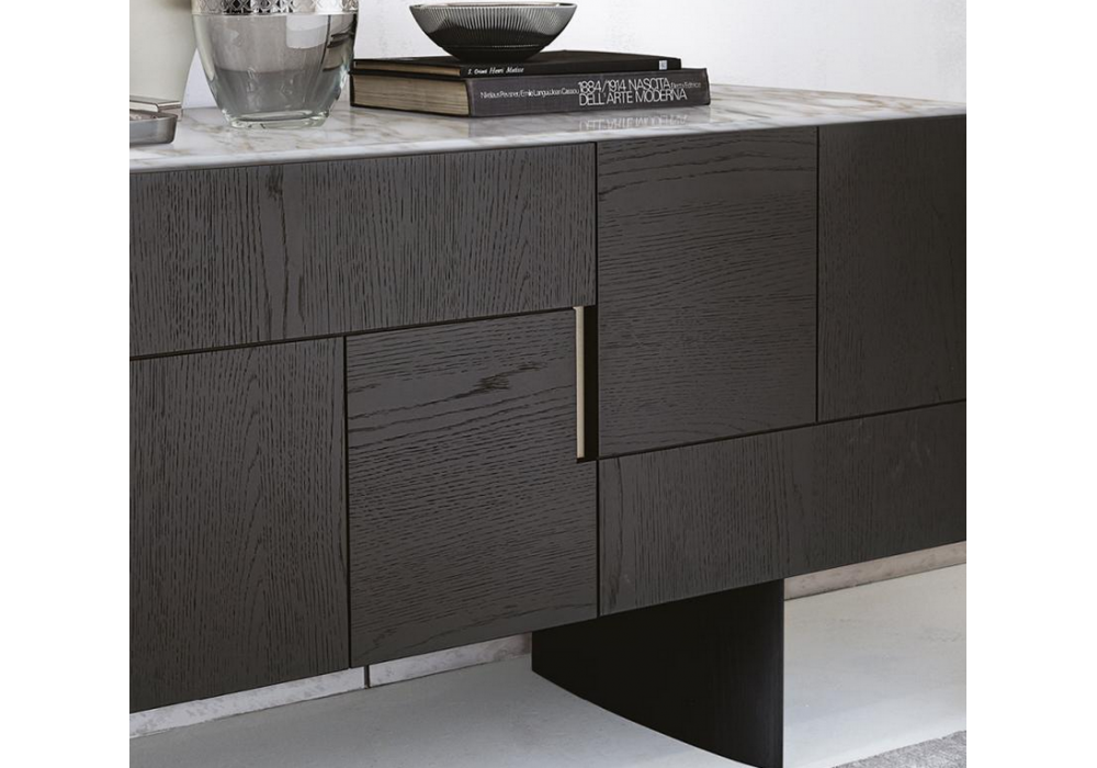 Arne designed by Marco Boga for Casamilano is a sideboard with MDF structure covered in essence. Top in marble or veneered wood. Inside there is a shelf in tempered bronze glass and an internal drawer with cushioned guide. Brass-coloured lacquered MDF handle.