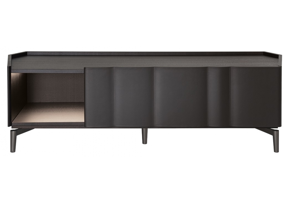 Delphi designed by Carlo Colombo for Giorgetti is a sideboard with fronts in Canaletto walnut or leather, top and shelves in Canaletto walnut, leather or marble. Available in different finishes and models.