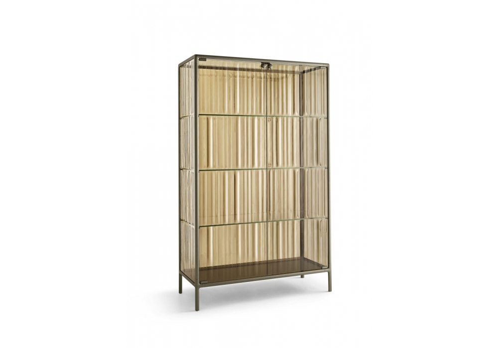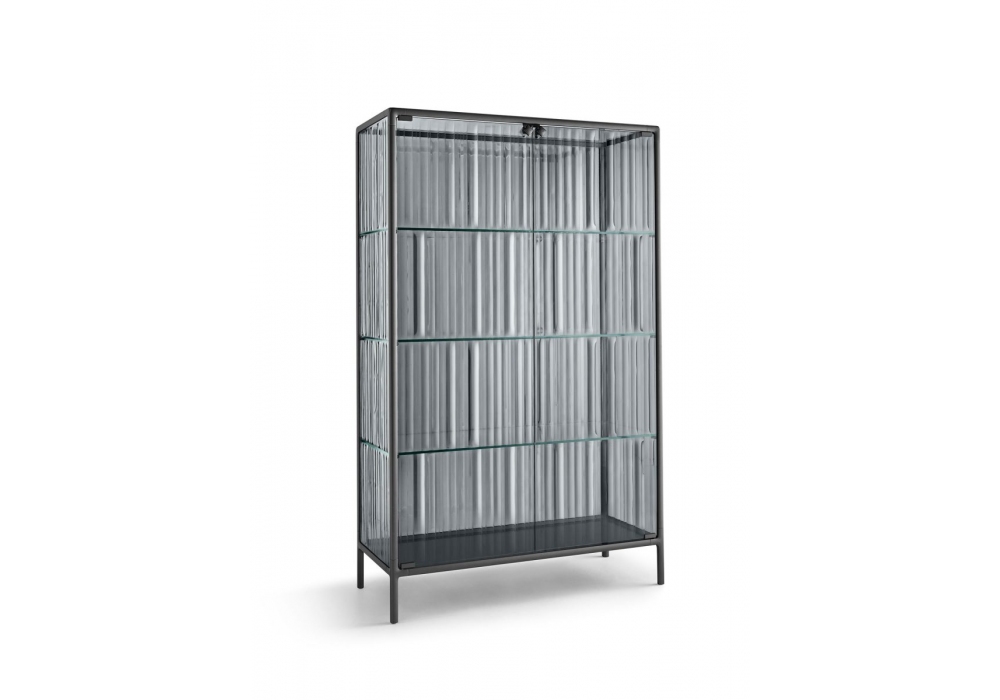 Echo Line designed by Marcel Wanders for Fiam is a display cabinet with a painted aluminum structure in various finishes. Doors and display cabinet cover in smooth or fused and tempered glass. Shelves in extralight tempered glass. LED lighting system integrated into the front uprights of the structure (optional).