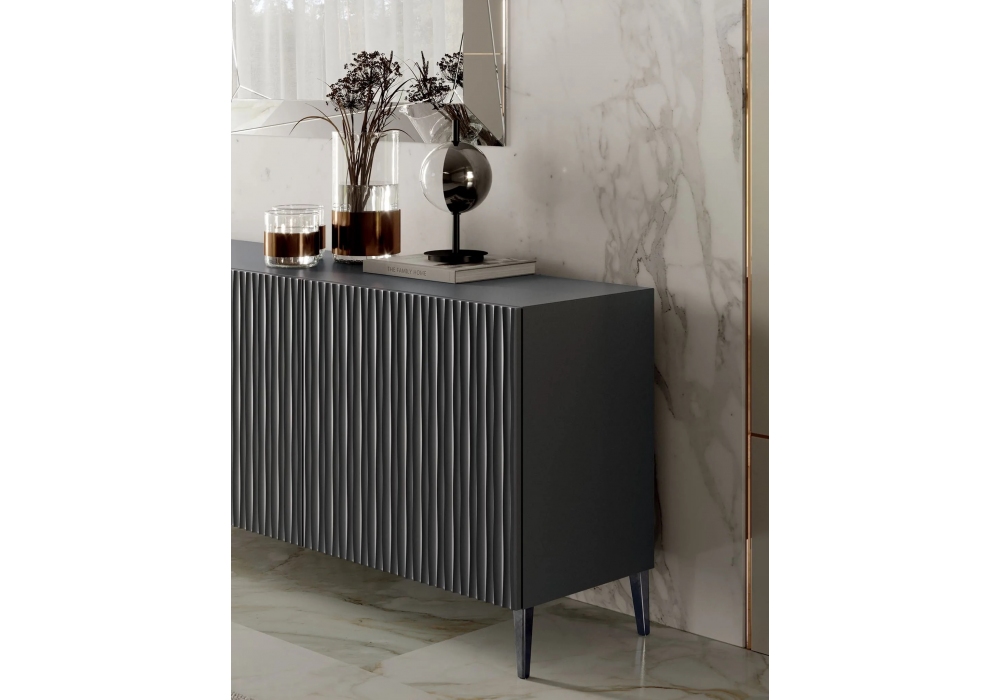 15.48/15.49 Musa designed by E-Ggs for Bontempi is a sideboard with a wooden structure, composed of two or three hinged doors, internal shelves in transparent glass, sides in lacquered wood and feet in lacquered aluminium. Available in different finishes and sizes.