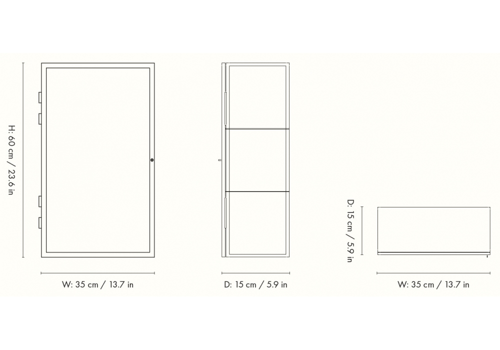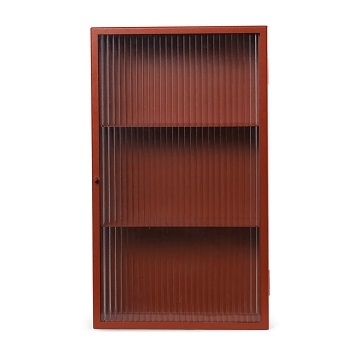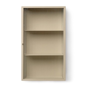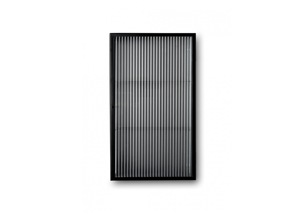 Haze designed by Ferm Living is a wall cabinet with reeded glass door and powder coated iron structure, available in different finishes. A practical wall-mounted cabinet for storing smaller items, perfectly suitable for storing glasses in the kitchen or beauty essentials in the bathroom. It also works equally well in a hallway filled with everyday objects such as keys and sunglasses.
