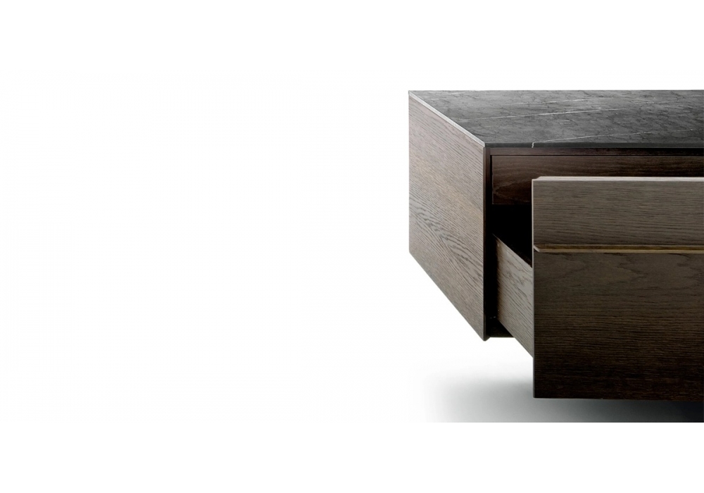 SC16 produced and signed by DePadova is a container unit with steel feet and adjustable footrest. The structure of the container is made of oak or oak veneered blockboard panels painted with transparent solvent or water-based paint. The front panels are made of oak or oak veneered blockboard finished with transparent water-based or solvent-based paint or in brass or steel sheet. The top is in wood, steel, brass, marble or midi. The base is in matt black powder-coated steel and a foot in burnished steel. Adjustable footrest in thermoplastic or with 4 simple fixed feet.